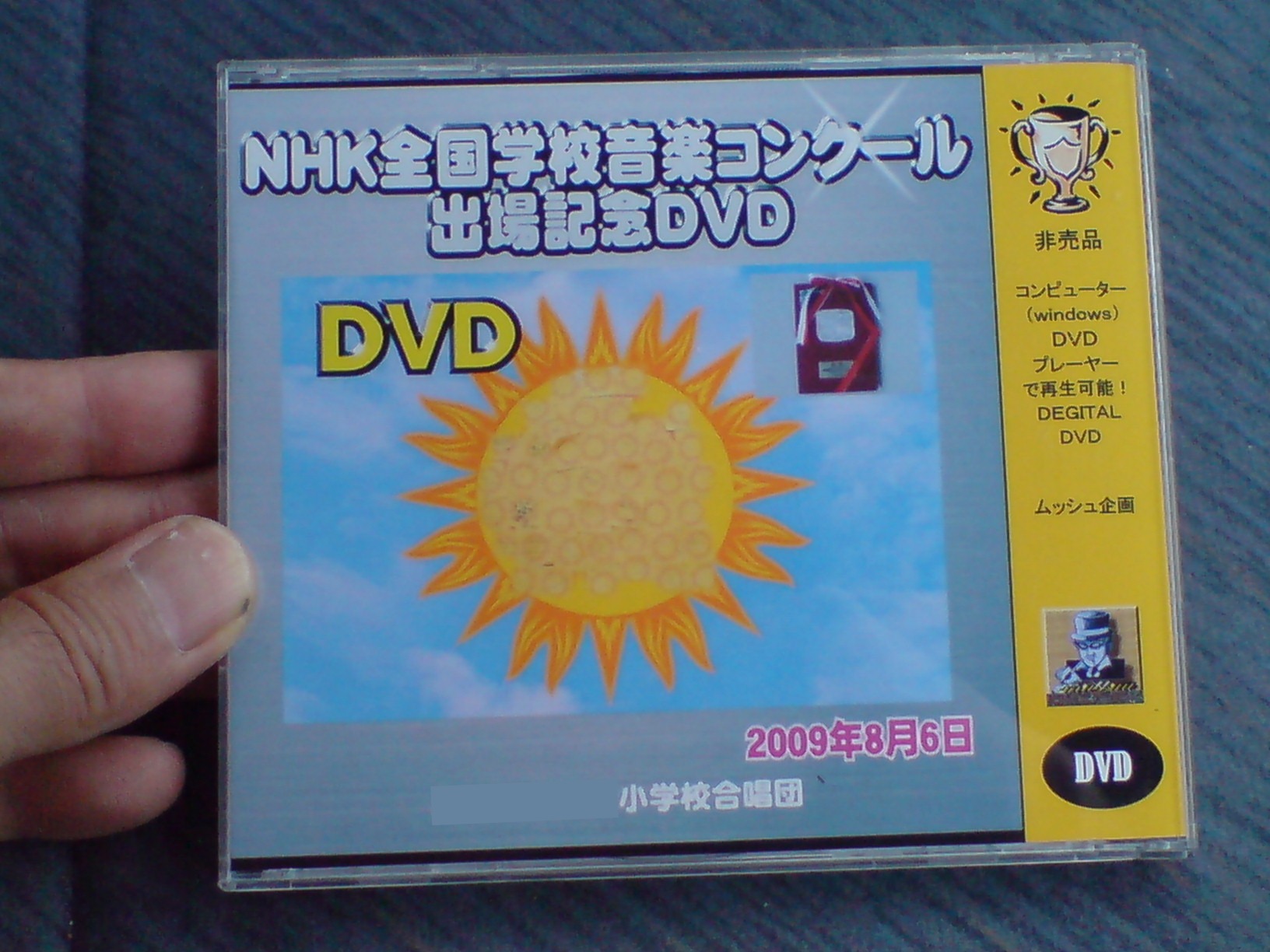 合唱団の子供達やお世話になった方々に配るDVDができあがりました。子供達の夢を書いた「夢の太陽」をパッケージの表紙に持ってきました。