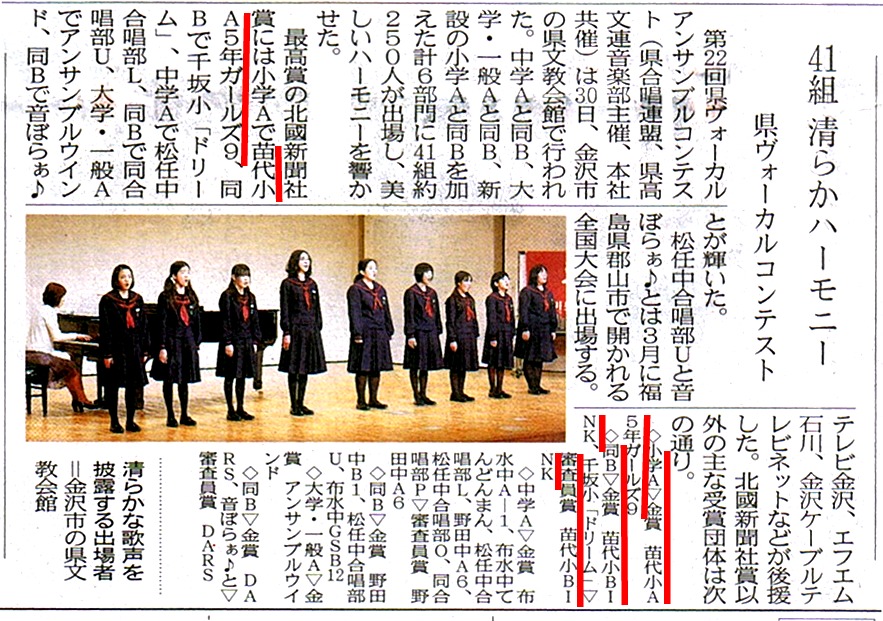 アンサンブルコンテストの新聞記事