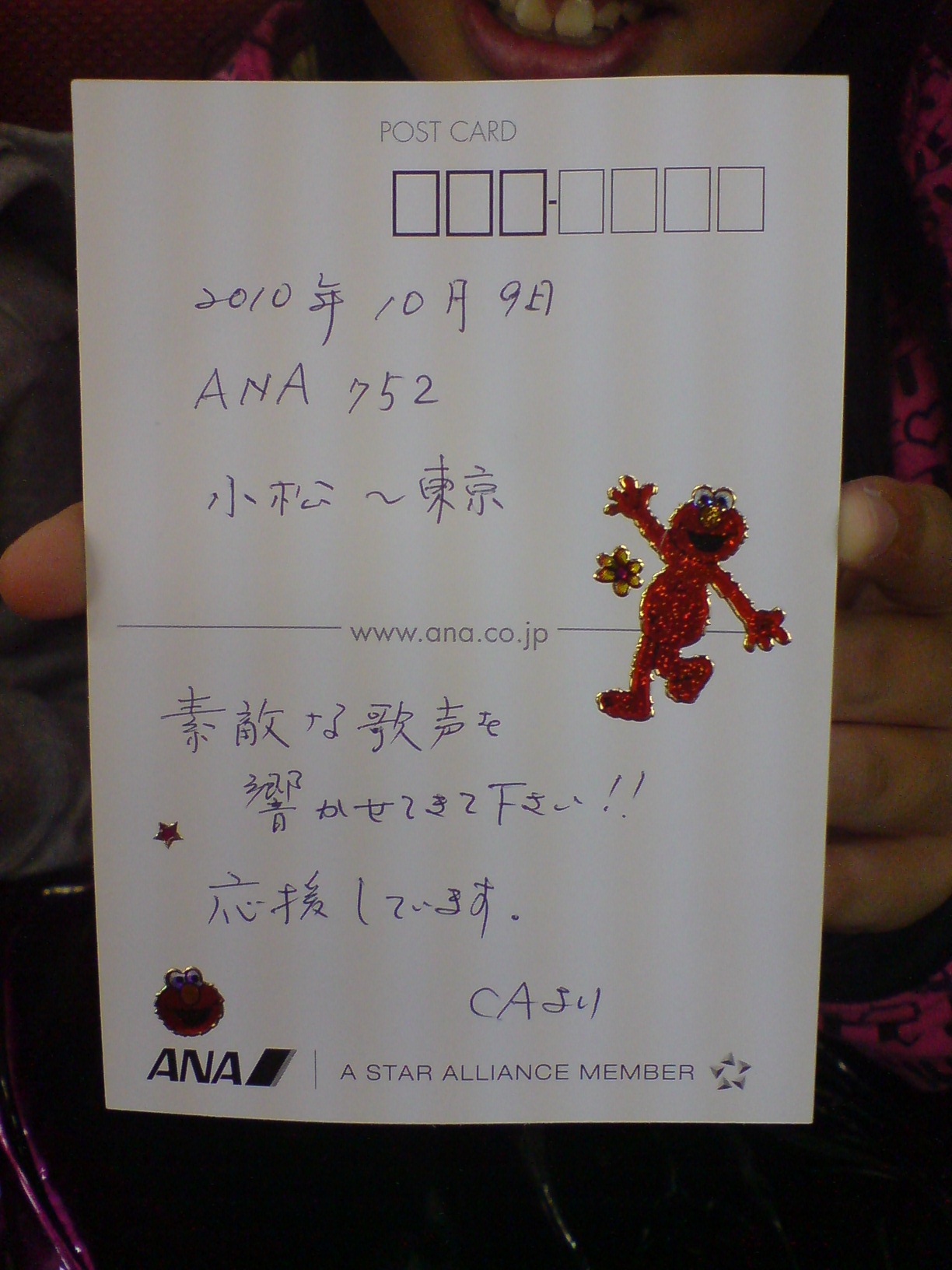 その後、突然のサプライズ、なんと一人一人、こんなコメント入りの絵葉書をプレゼントされたのです。子供達とてもうれしそう。びっくりしました。