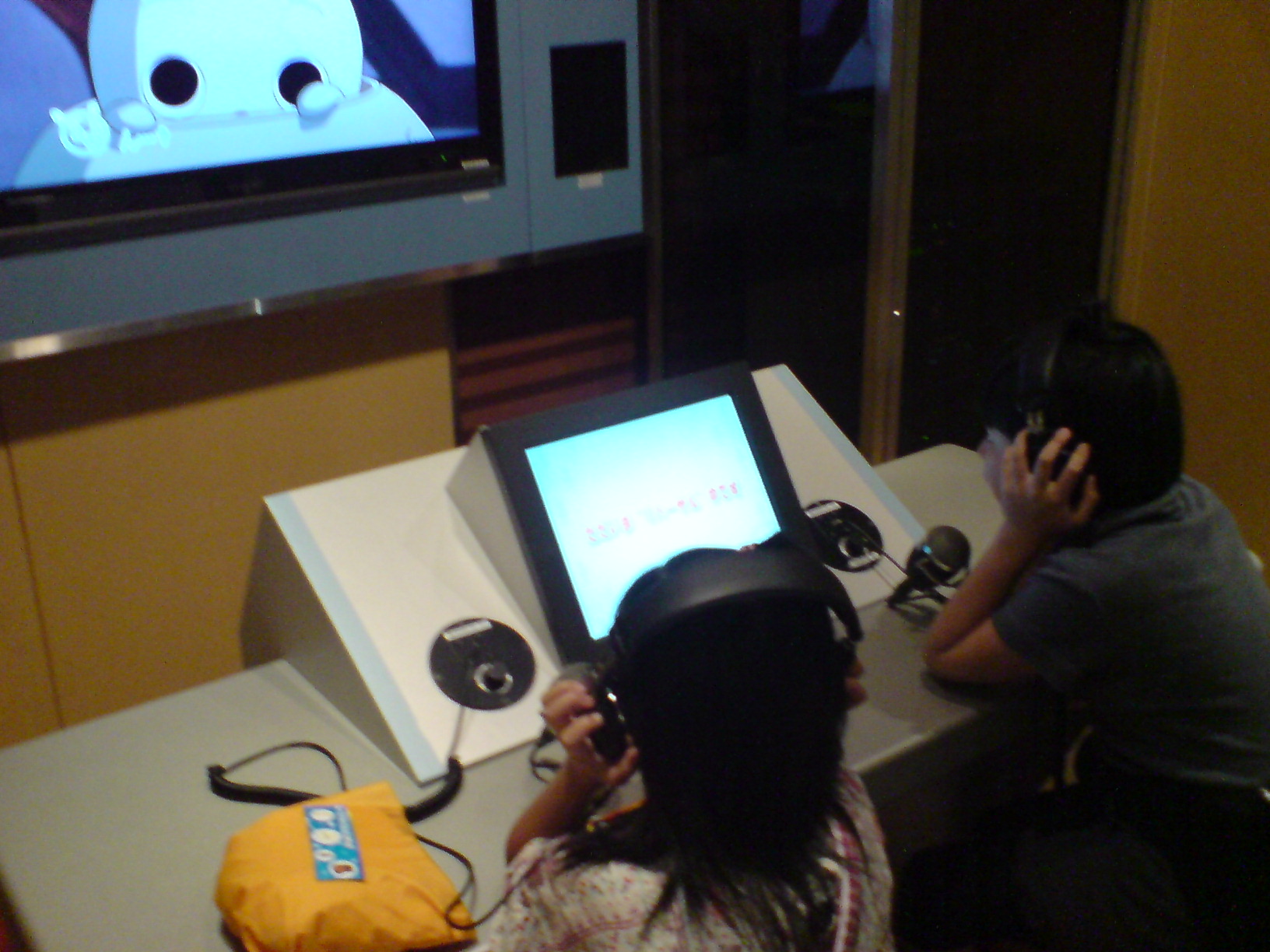 開場までの間、スタジオパークで遊びました。アフレコ体験や立体映像、お土産タイム等、子どもたち楽しんでいたようです。