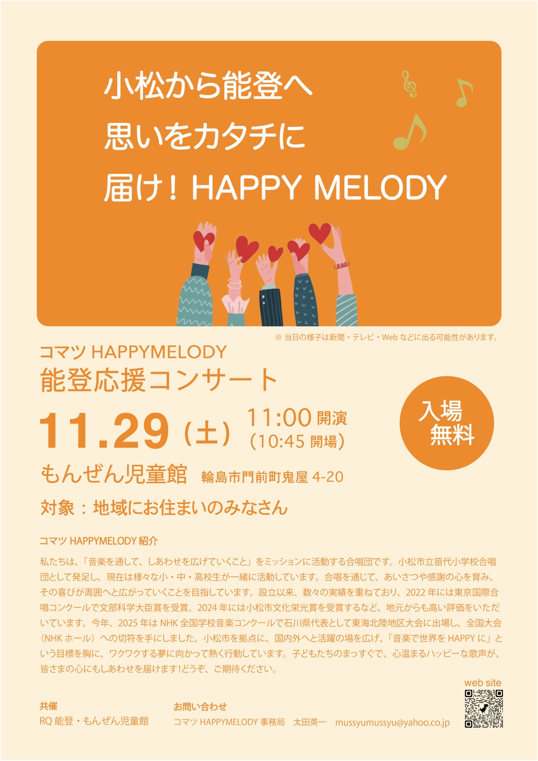 前回の能登応援コンサートの様子です。今回もおもしろいですよ。